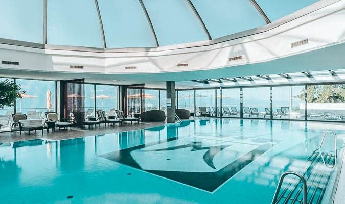Photo Credit: Fairmont Grand Hotel, GenevaThe Fairmont Grand Hotel Geneva is a prestigious hotel featuring three gourmet restaurants, a luxurious spa complex, and an inviting indoor pool.